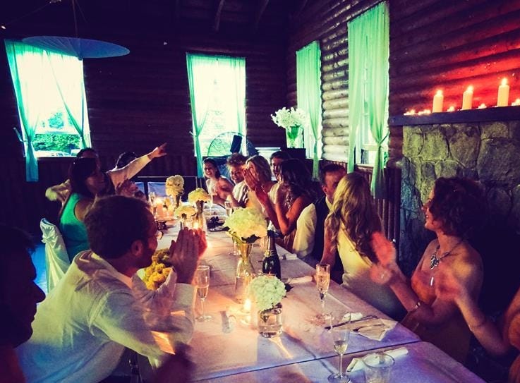 All right you forgot, when you tried to sneak off to the moldy smelling cabin (this was a Baptist Bible camp only used summers for kids.) to pass out and one of your bridesmaids chased you down and physically dragged you back to the reception, forcing you to drink water and dance like she had a six shooter aimed at your feet.