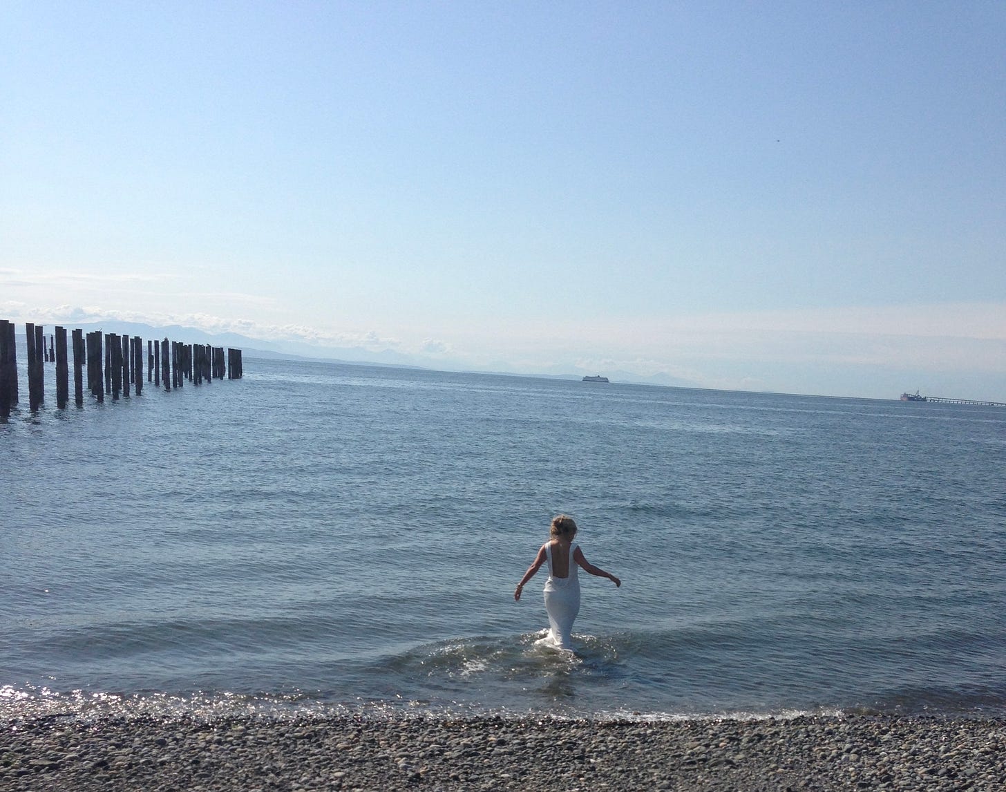 After the reception we decide to walk down to the local dive bar. I kick off my heels. My white polyester wedding dress drags on the gravel road. Someone, not my husband, picked me up and gave me a piggy-back ride to the pub. The party trickled from the bar back to our house. The DJ ended up naked in our hot tub with a handful of people that weren’t even at the wedding. One of my bridesmaids took a running jump into the Jacuzzi, caught her pinky toe on the edge, and nearly ripped it clean off. At that point there was more naked people than water in it anyways. It took a lot of draining and bleaching to convince me to get back in there after that.