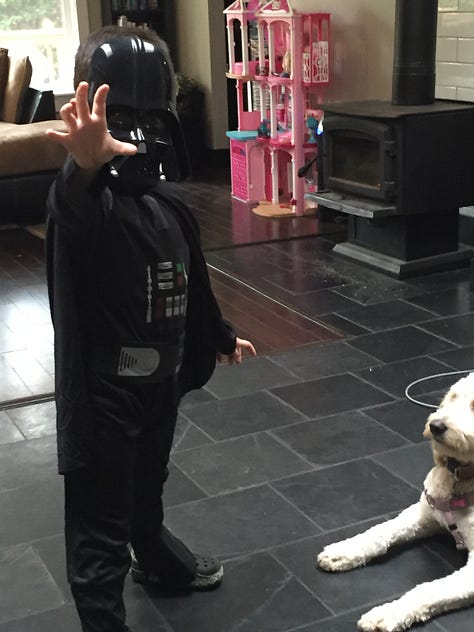 Darth Vader and I trick-or-treated that year. It was the last time he wore a store bought costume.