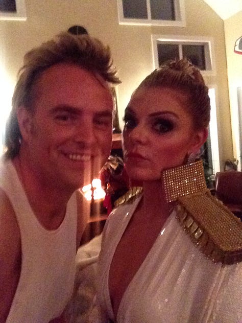 JC, who’d never been around kids before, left him crying in the room and went to his closet and got into full drag, including the 80’s hair band wig. JC pranced back into the room where he’d left my crying child and announced